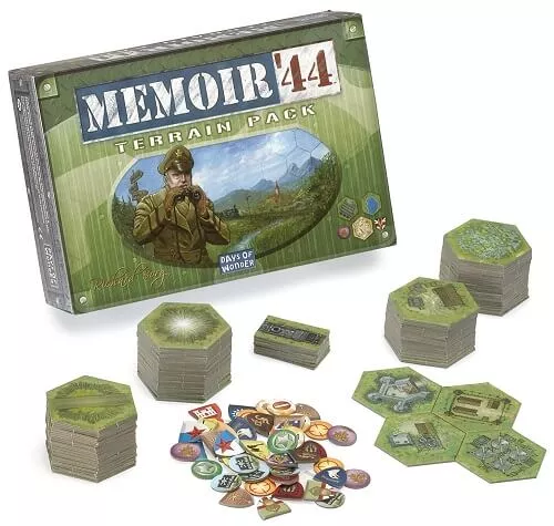 Terrein-uitbreidingsset van het bekende oorlogsspel Memoir ’44! Deze expansie biedt extra terreintegels en spelopties voor nog meer diepgang in het spel. Inhoud: 16 obstakels, 66 Terreintegels, 22 landmark tegels, 20 ronde markers (mijnen, medailles), 28 Special Unit badges, 4 historische scenario’s en regels in Engels + Frans.
