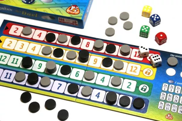 Het bekroonde dobbelspel QWIXX van Steffen Benndorf krijgt een vervolg. Deze variant voor twee spelers heeft hetzelfde Qwixx gevoel, maar speelt uiteindelijk heel anders door de toevoeging van een nieuw spelmechanisme. Het voorste schijfje in elke rij kan namelijk door je tegenstander geslagen worden, maar alleen als je er zelf geen toren van hebt gemaakt! Zo zul je moeten aanvallen en verdedigen en blijft het spel spannend tot het einde. Eenvoudig en enorm leuk!