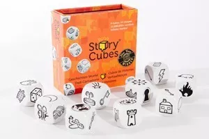 Set met 9 dobbelstenen, zodat er 54 afbeeldingen te gooien zijn. Probeer een leuk verhaal te maken van de gegooide afbeeldingen.