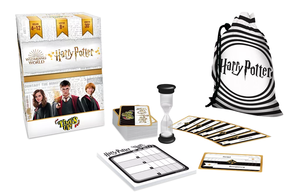 Speciale Harry Potter editie van Time’s Up!, het coöperatieve kaartspel dat bestaat uit 3 verschillende spelrondes. Probeer tijdens elke ronde jouw team zoveel mogelijk Harry Potter begrippen op de kaarten te laten raden door een beschrijving te geven, een enkel woord te noemen of door het begrip uit te beelden. Het team dat na drie rondes de meeste kaarten heeft geraden en dus de meeste punten heeft verzameld, wint het spel! Ideaal voor de fans van Harry Potter!