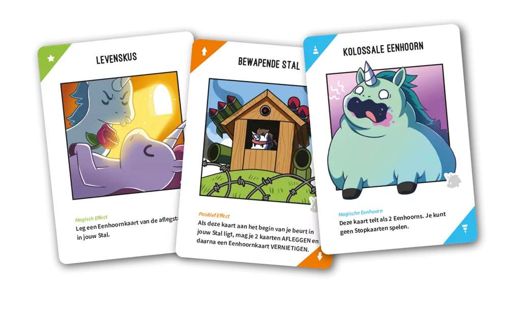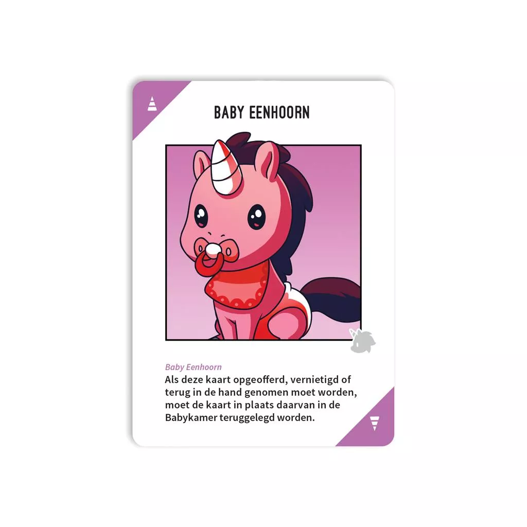 Probeer als eerste speler 7 eenhoornkaarten in jouw ‘stal’ (voor je op tafel) te verzamelen. Iedere speler begint het spel met 1 baby eenhoorn in hun stal en tijdens een speelbeurt mag je ofwel een eenhoorn uit je handkaarten in je stal leggen ofwel effectkaarten spelen om je tegenstanders dwars te zitten. Zo kun jij bijvoorbeeld eenhoorns uit iemands stal verwijderen of iedereen een eenhoorn laten afleggen etc. Bij 2-5 spelers is 7 eenhoorns voldoende voor de winst! Bij 6-8 spelers is 6 eenhoorns voldoende om te winnen.